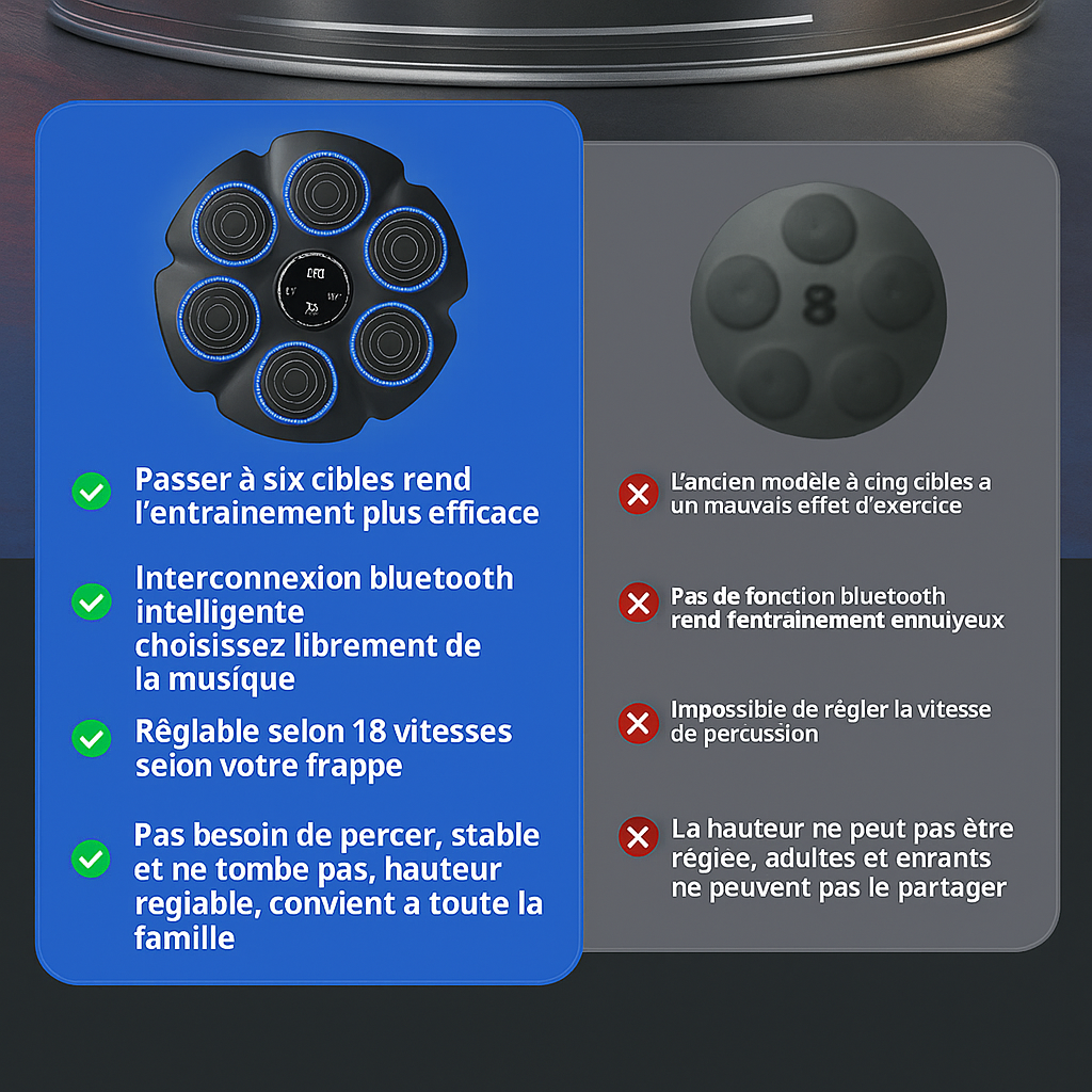 Vous cherchez une nouvelle façon de vous entraîner sans quitter la maison ? La BoxeMusique™ est la solution idéale pour les amateurs de sport qui veulent allier cardio, renforcement musculaire et plaisir grâce à la musiqu